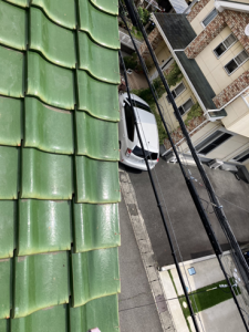 屋根の端にある瓦が多少ズレていたので、そこの補修と、「台風などで飛散すると怖い」と相談もあったので、大屋根全体の瓦をボンドにて固定するラバーロック工法のご提案をさせていただきました。